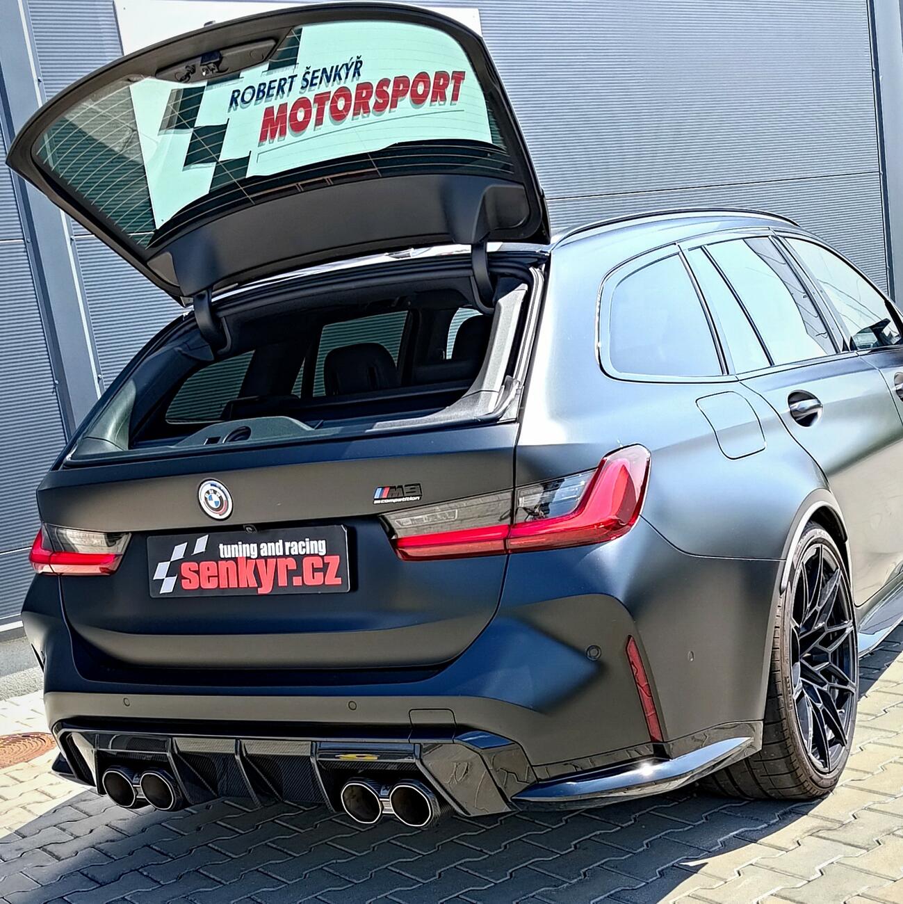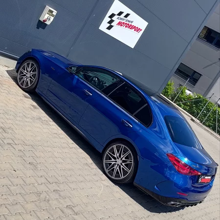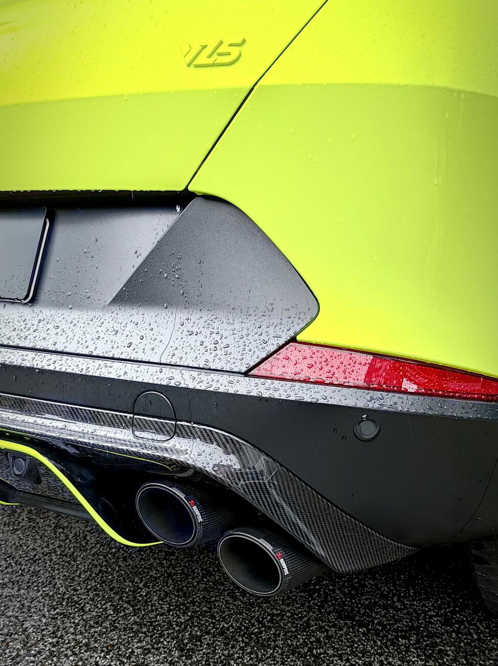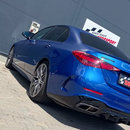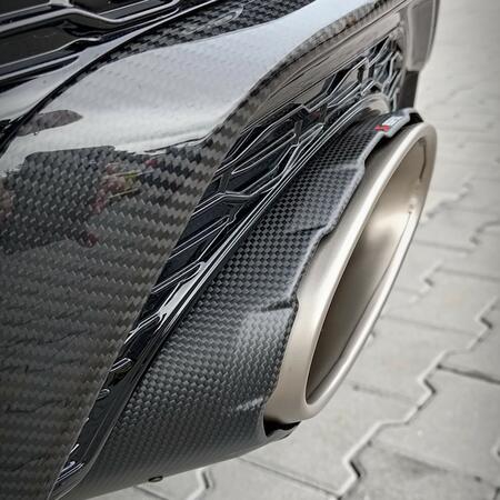 Hluboký sportovní zvuk doplňuje návykové bublání při ubrání plynu, titanové koncovky s řemeslně vyráběnými karbonovými pouzdry ve stylu většího bráchy C 63 zase dají zádi vozu punc výjimečnosti.