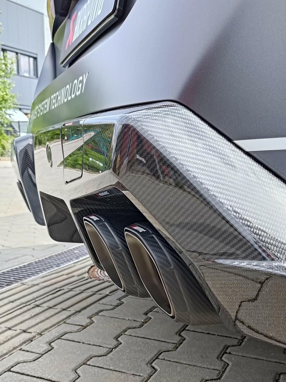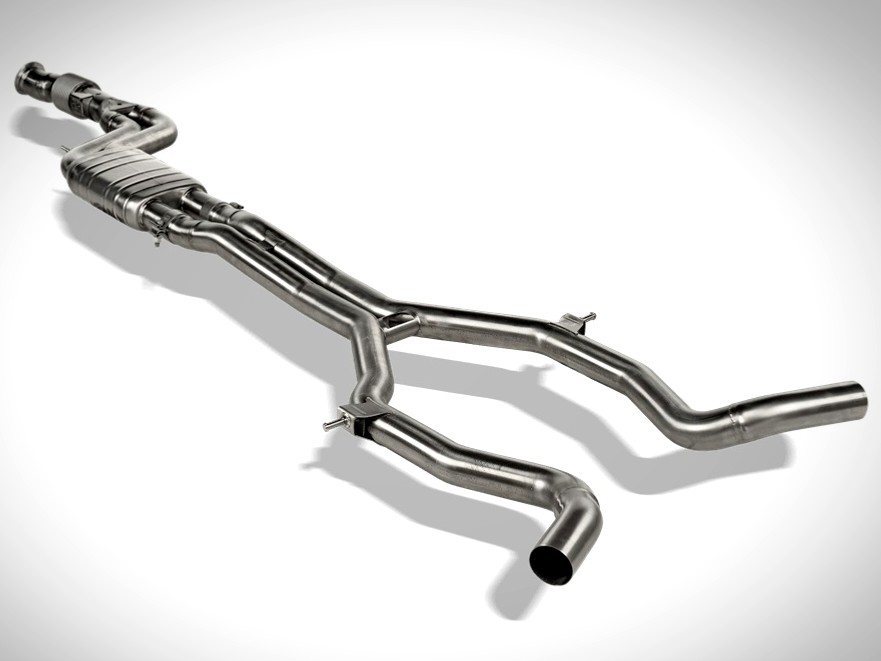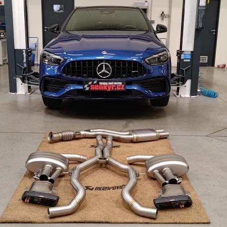 Sportovní výfuk z titanové slitiny Akrapovič Slip-On doplněný o středové potrubí Evolution Line totálně změní charakter nového Mercedes-AMG C 43.