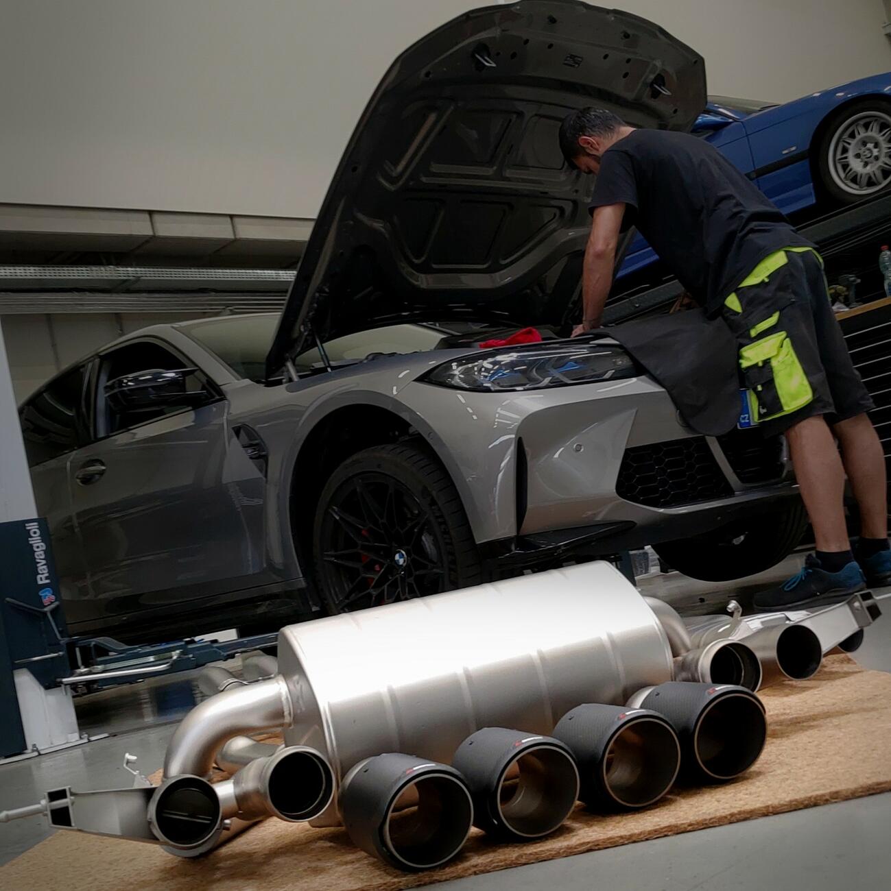 Sportovní výfuk z titanové slitiny Akrapovič Slip-On doplněný o středové potrubí Evolution Line totálně změní charakter nového Mercedes-AMG C 43.