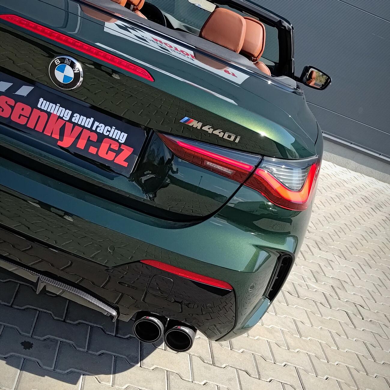 Hluboký sportovní zvuk doplňuje návykové bublání při ubrání plynu, titanové koncovky s řemeslně vyráběnými karbonovými pouzdry ve stylu většího bráchy C 63 zase dají zádi vozu punc výjimečnosti.