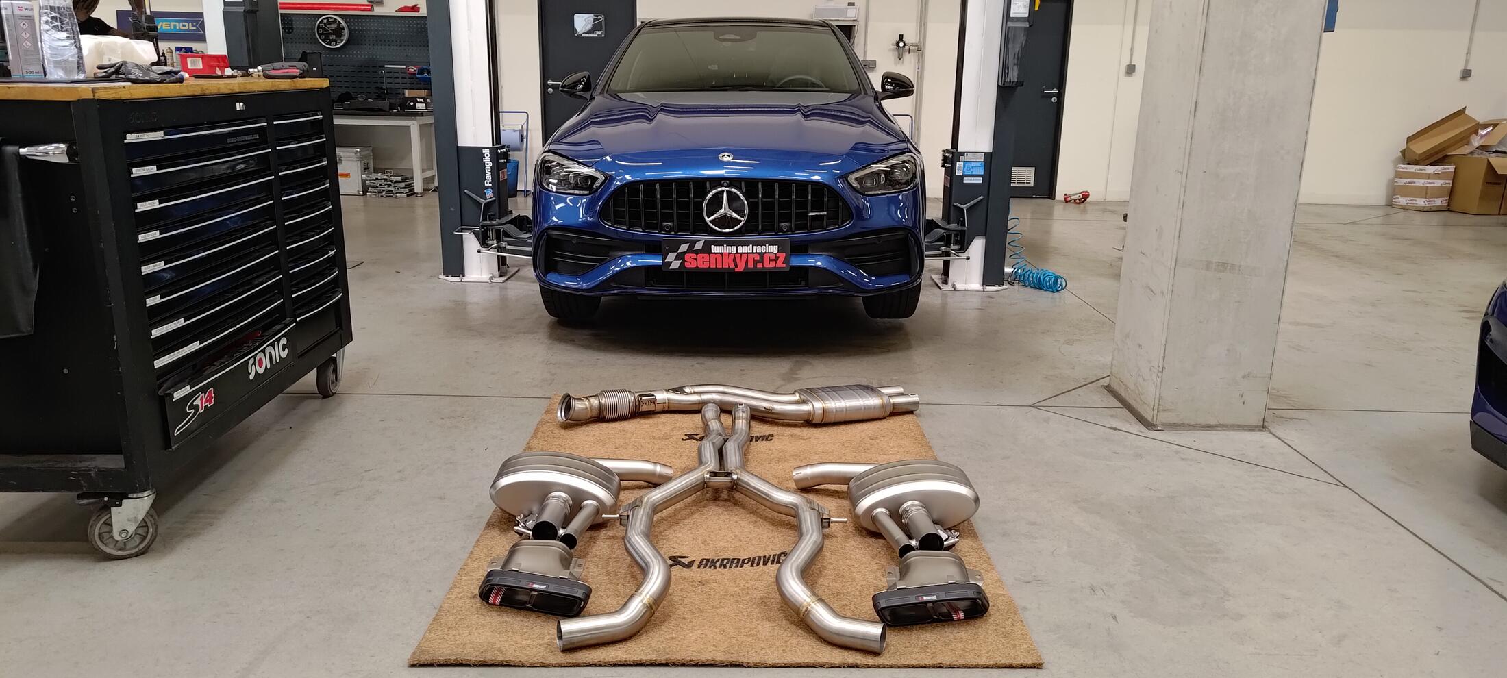 Nové kombi Mercedes-AMG C 43 od nás dostalo výfuk Akrapovič Evolution včetně středového potrubí a výsledek je fakt jiné kafe ☕