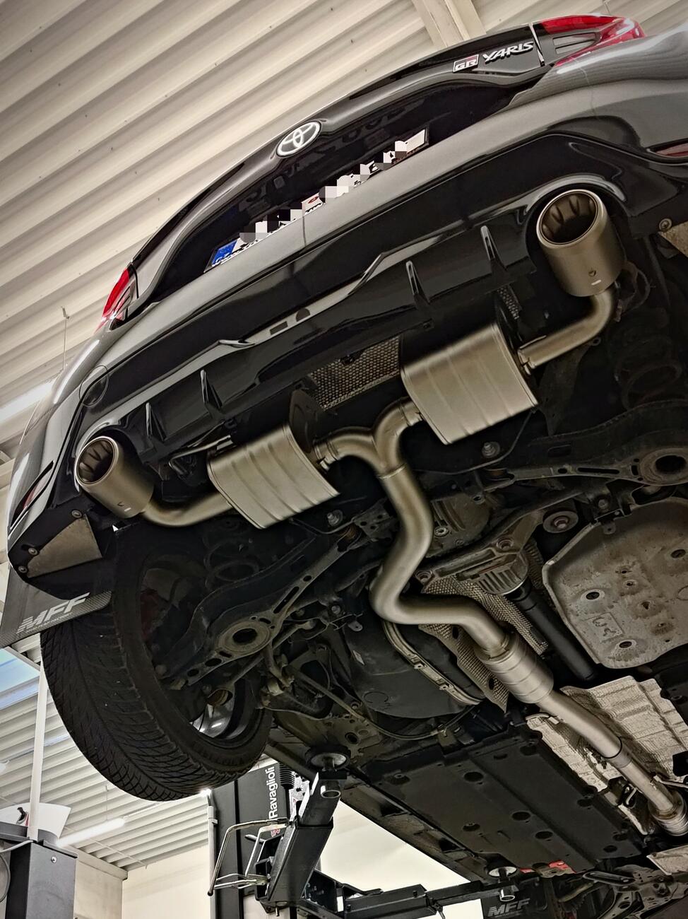 Instalace výfuku Akrapovič Slip-On Race Line společně se spojovacím potrubím Evolution povzbudila Toyotu GR Yaris o nezanedbatelných 18 k a 22 Nm, díky rozsáhlému využití titanu se podařilo snížit váhu výfuku o 5,6 kg.