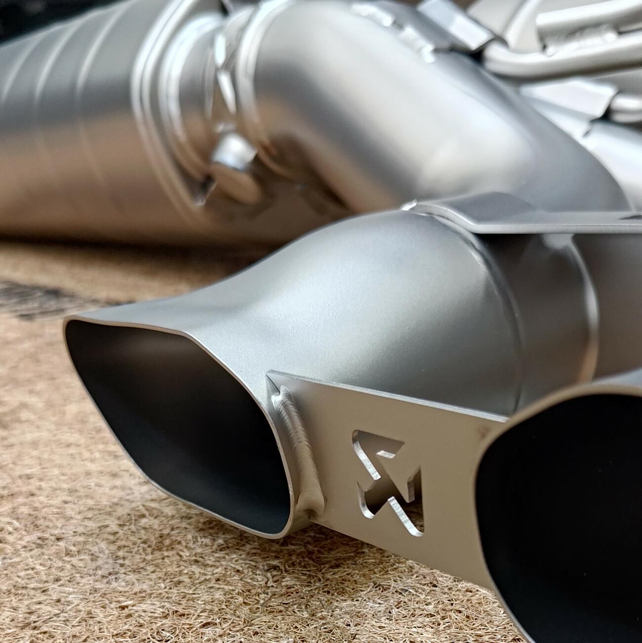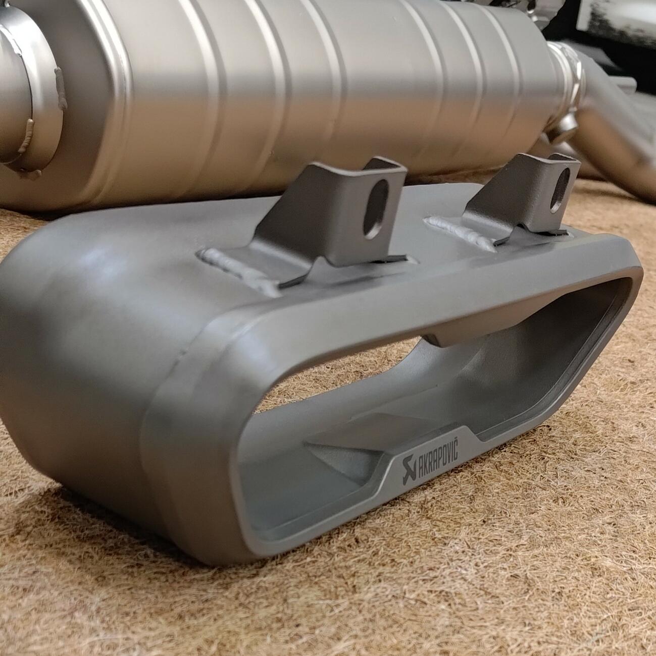 Výfukový systém Evolution Line vyrobený z vysoce jakostní, odolné a lehké titanové slitiny je o 45 % lehčí než sériový výfuk. Je zakončený zvlášť navrženými koncovkami odlévanými ve vlastní slévárně titanu Akrapovič, které ústí po obou stranách auta. Tento nový systém Evolution Line (Titanium) je pečlivě tvarován, aby využil omezený prostor pod vozem, a jeho povrch je potažen pro zvýšení odolnosti.