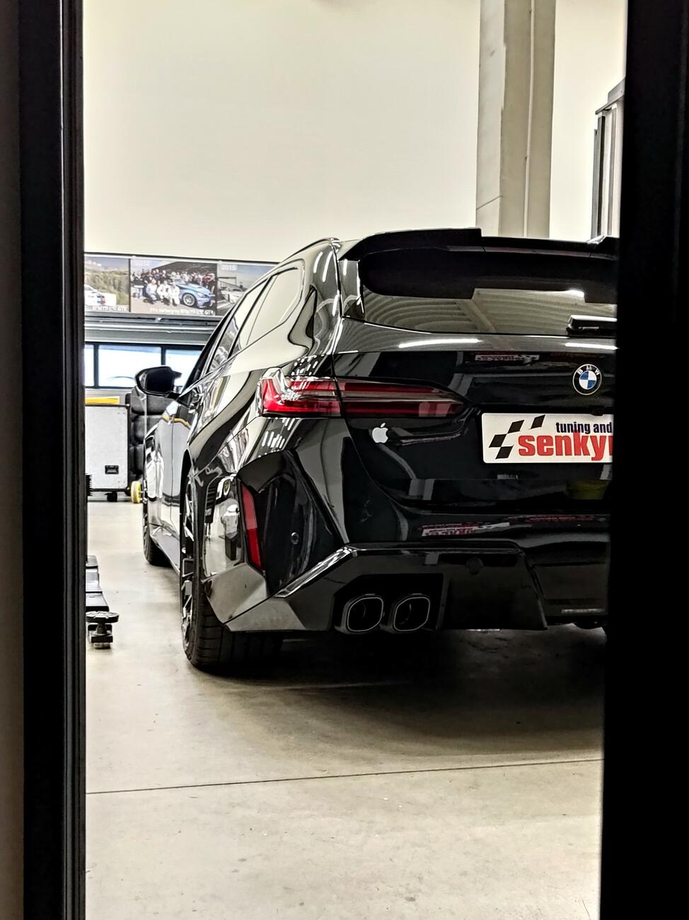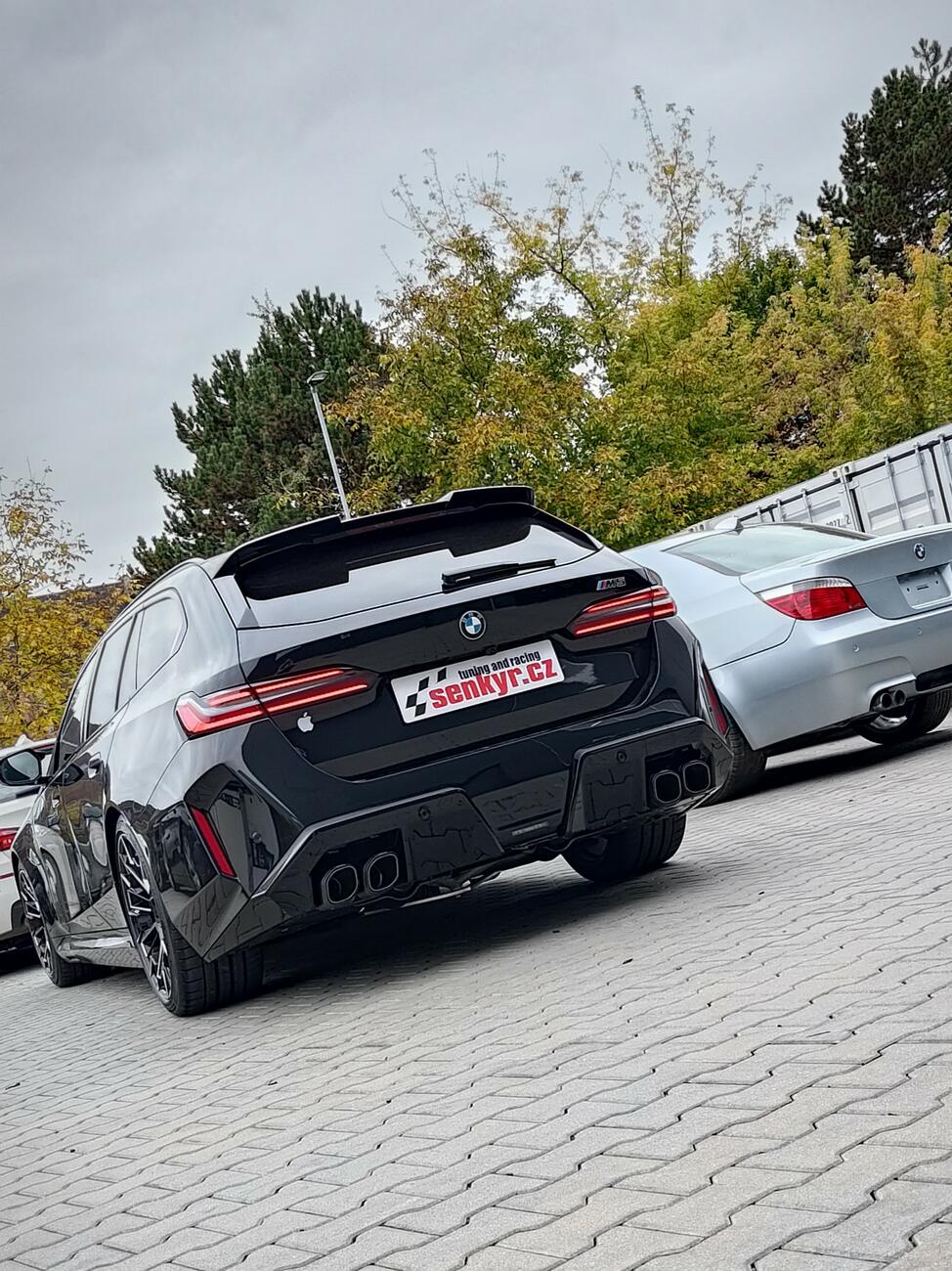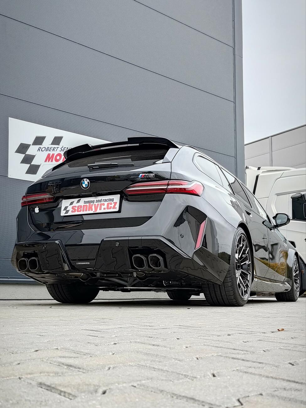 Sportovní výfuk Akrapovič pro hybridní BMW M5 lze použít i pro verzi Touring. Propracované hexagonální koncovky dokonale vyplňují masivní sériový difuzor, titanový výfuk s kompaktním tlumičem dává osmiválci krásný hluboký zvuk. Unikátní architektura potrubí snižuje protitlak a vede k nezanedbatelnému nárůstu točivého momentu.