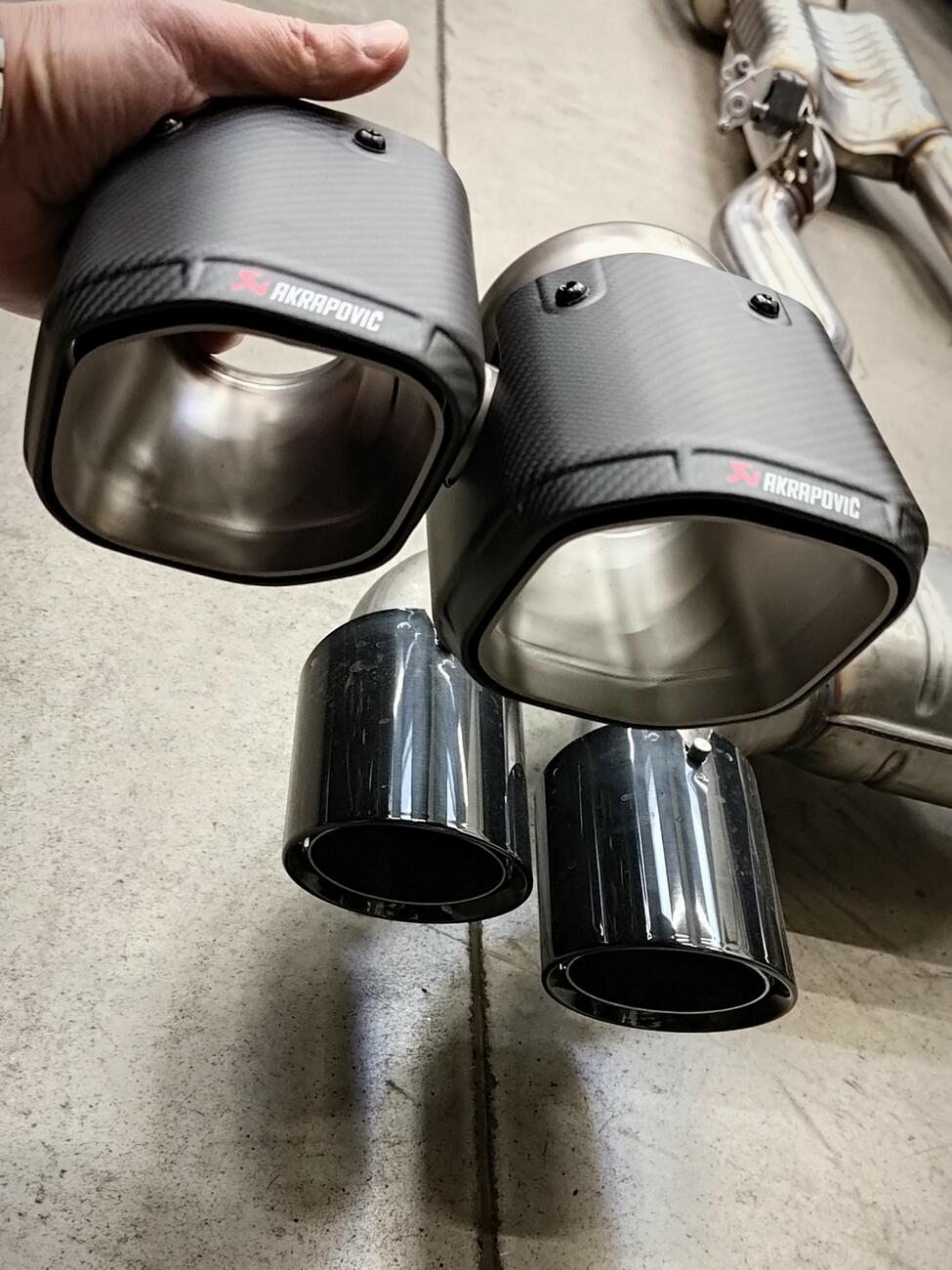 Ke sportovnímu výfuku Akrapovič pro aktuální generaci BMW M2/M3/M4 G8X můžete vybírat ze tří druhů ručně vyráběných titanových koncovek s karbonovými pouzdry: