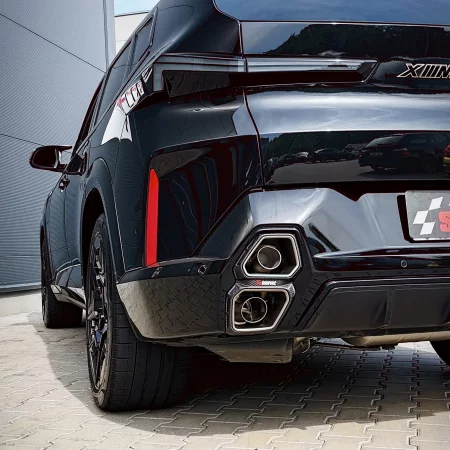 Titanový sportovní výfuk Akrapovič Slip-On dává 8-válcovým verzím BMW XM ten správný hluboký zvuk, který od auta s výkonem 748 k očekáváte. S technologií Sound Reflector zajišťuje, aby se příjemná akustická odezva dostala i do perfektně izolovaného interiéru k řidiči.
